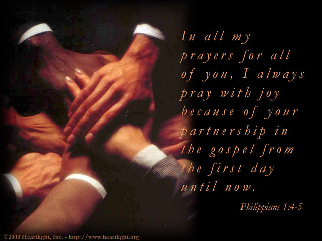 Father in heaven, I pray that your will be done on earth as it is in heaven. Please bless and empower the spread of your Kingdom. Protect and strengthen those with whom our church is partnered wherever they may be. Bless them with greater resources, maturity, and character. Help me to recognize and to do the things that I can do to support and encourage them. In Jesus’ name I pray. Amen.
